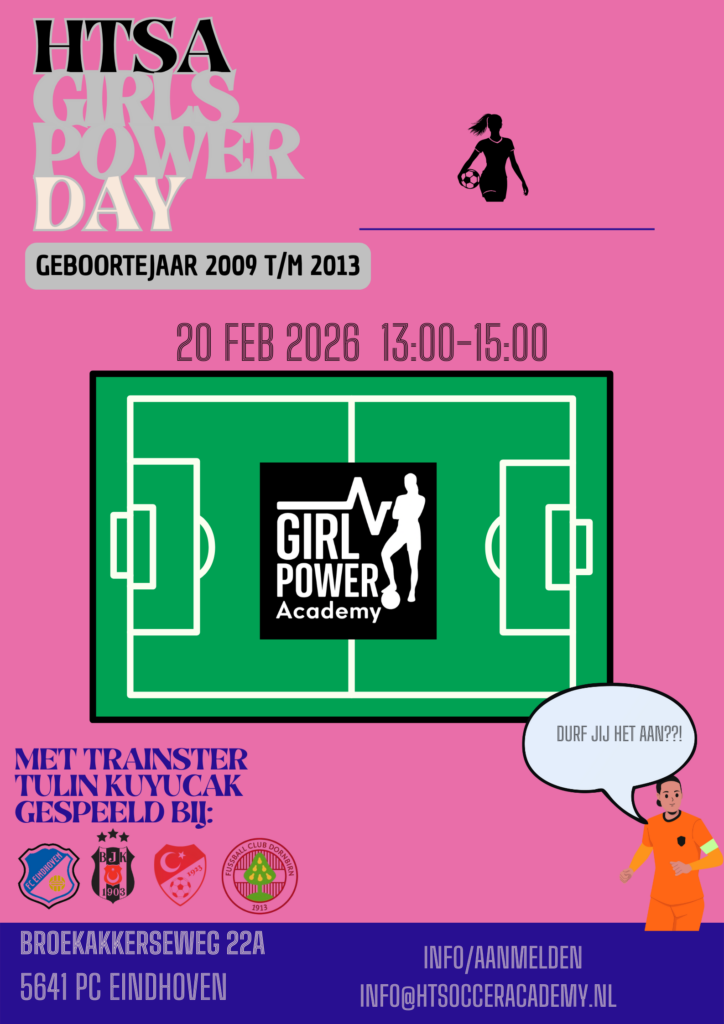 Voor onze succesvolle Girl Power Academy zijn wij op zoek naar enthousiaste speelsters die willen trainen onder leiding van een ervaren trainster en prof. Tijdens de trainingen werken we onder andere aan techniek, coördinatie en cognitieve oefeningen, op een speelse en uitdagende manier.